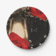 Rustic Glow Lantern Bright Red Roses Barn Wood Paper Plate
