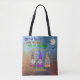 This fun tote bag is just perfect for trick or treating on Halloween. There are 3 Gnomes dressed in orange, purple with a candy pieces pattern and black with orange pumpkins pattern. Background is a beautiful rustic watercolor, faux textured fabric. There is a full moon in the sky and two bats flying about in the moonlight. Below the gnomes you put your name using the easy template found under "personalise this template. Design is on both sides. This tote bag is perfect for young kids on up to adults!
