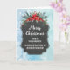Merry Christmas for goddaughter and her husband card with rustic country chalkboard pattern and winter foliage with poinsettias.