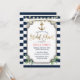 Nautical Gold Anchor Navy Blue White Stripes Bridal Shower Invitations.