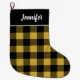 Rustic Gold and Black Buffalo Check Monogram Large Christmas Stocking