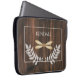 Protect your laptop with a Rustic Gold Dragonfly Personalised Laptop Sleeve. Laptop sleeve design features a vibrant dragonfly resting on delicate foliage with a space to add your name against a rustic wooden background with a place to personalise with your name. Additional items available with this design as well. Please contact me directly for assistance with personalisation.