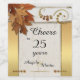 An original design anniversary wine label featuring rustic weathered white painted wood with a chic golden lining and fall leaves.