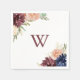These rustic gold leaves and floral monogram wedding paper napkins are perfect for a modern wedding reception. The design features hand-drawn watercolor purple, navy, blush, burgundy, navy flowers, green and gold leaves.