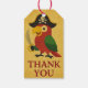 Bring pirate flair to your party favours with this pirate parrot gift tag! Featuring the bold parrot pirate—complete with a skull-and-crossbones hat, eyepatch, and cutlass—set against a rustic gold parchment background, this tag proudly displays “Thank You” in bold Victorian-style lettering.