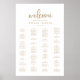 This rustic gold script alphabetical seating chart poster is perfect for a country wedding. This sign can be used to organise your guests alphabetically or by table number by changing the names of the headings. The simple and modern gold and white design features unique whimsical handwritten calligraphy lettering with a contemporary minimalist boho style. Customisable in any colour. Keep the design minimal and simplistic, as is, or personalise it by adding your own graphics and artwork. This wedding poster includes enough room for up to about 120 guests. Make room for more (or less) guests by clicking the "customise" button and decrease or increase the size of the font. In addition to the placement of each guest, personalise this sign with the names of the bride and groom and the wedding date.