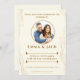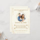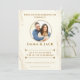 Set a welcoming tone for your special day with this warm and inviting wedding card, artfully designed for autumn celebrations and rustic romances. At its heart is a circular photo announcement of the happy couple, framed by hand-drawn gold leaf accents that evoke elegant botanical charm. The nature-inspired cream background and fall earthy tones create a soft, romantic neutral palette, while the bold modern serif typography adds a touch of classic sophistication.