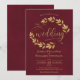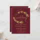 Rustic Golden Leaves Elegant Burgundy Wedding Invitation