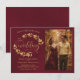 Rustic Golden Leaves on Burgundy Photo Wedding Save The Date