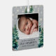 Step into a winter wonderland with our rustic grandparent christmas ornaments! Featuring the charm of a grey wooden background, twinkling string lights, and enchanting watercolor Christmas trees. Customisable with a memorable baby photo, the saying "our first christmas as grandparents", the childs name, and the year.