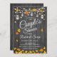 Rustic Couples Shower Invitation with dark gray wood pattern and string fairy lights. Features mason jars, script font and fall autumn leaves. Perfect for a rustic style party. Please message me if you need further customization.