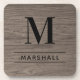 Rustic Gray Wood Serif Monogram Name Coaster