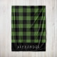 Rustic Green and Black Buffalo Check Monogram Fleece Blanket