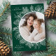 Elegant holiday card featuring your photo encircled by white pinecones, pine boughs, and winter foliage with a green background. The botanical holiday photo card features your custom holiday greeting, family name, and the year in white lettering. Add your custom message to the back of the card or leave blank.