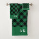 Rustic Green Black Buffalo Check Monogram Bath Towel Set