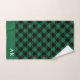 Rustic Green and Black Buffalo Check Monogram bath towels with green and black buffalo plaid pattern. Personalise, monogram, family name or person's name. Green and black plaid chequered perfect gift for the holidays and Christmas.