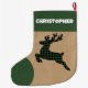 Rustic Green & Black Plaid Reindeer Custom Name Large Christmas Stocking