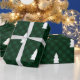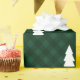 A rustic wintery wrapping paper in deep dark green plaid with white spruce trees designed in a minimal style.