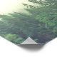 This elegant wedding seating chart has table assignments for 60 guests at ten people per table. It features a rustic yet beautiful design with forest of green pine trees shrouded in mist or fog. The lacy script calligraphy title reads "please find your table" There is space for the names of the wedding couple as well as the wedding date.