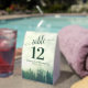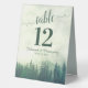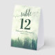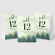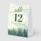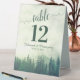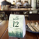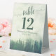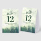 These tent signs will not only help your guests find their tables, they'll also make your wedding reception more beautiful. The design is both rustic and elegant featuring a mountain scene with a green pine tree forest shrouded in mist or fog. The title is in lacy script calligraphy with bold numbers so your guests can easily find the right table. There is room for the names of the couple and the wedding date.