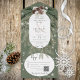AVAILABLE WITH OR WITHOUT A QR CODE TO SCAN. This design features a rustic green pine and pinecone bouquet on a soft tan brown background with white flowers. It is accented with a white sparkle overlay to illustrate the magic of the beautiful winter holidays. Perfect for a Christmas or winter wedding. Personalised All-In-One invitations are a unique combination of both a beautifully printed custom invitation with an easy to tear off perforated RSVP postcard. And they are so easy to use! You simply fold, then seal the back flap with the three included clear stickers, and mail. And when your guests receive your custom invite, they just tear the perforated RSVP Card off and drop it back in the mail to you!