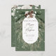 This design features a rustic green pine and pinecone bouquet on a soft pine green background with white flowers. It is accented with a white sparkle overlay to illustrate the magic of the beautiful winter holidays. Perfect for a Christmas or winter wedding. This card is part of the Rustic Tan Pine Winter Sparkle Wedding Suite created by Simply Farmhouse Press.