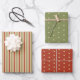 These rustic inspired gift wrap sheets feature polka dots and stripes in warm shades of green, rust red and cream.