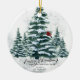 Rustic Green Winter Pine Trees Red Cardinal Bird Ceramic Tree Decoration