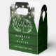 An elegant rustic wedding favour box featuring string lights and hand-drawn foliage floral on vintage emerald green wood panels. You can personalise with your own thank you message on the reverse. A perfect way to say thank you to your guests! Designed by Thisisnotme©