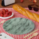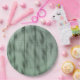 Rustic Green Wood Wall with Dappled Shadows/Light Paper Plate
