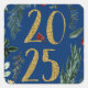 Rustic Greenery 2025 Blue New Years Holiday Square Sticker