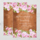 With pretty pink rose garlands framing your personalised wedding details set in elegant text on a vintage, rustic wood background. Designed by Thisisnotme©