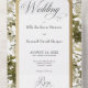 AVAILABLE WITH OR WITHOUT A QR CODE OR DINNER SELECTION OPTIONS. This design features a background of different types of botanical greenery. The white text area is framed in faux gold foil. A monogram with the bride and groom's first initial on the outside flap completes it. Created by Simply Farmhouse Press.