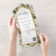 AVAILABLE WITH OR WITHOUT A QR CODE OR DINNER SELECTION OPTIONS. This design features a background of different types of botanical greenery. The white text area is framed in faux gold foil. A monogram with the bride and groom's first initial on the outside flap completes it. Created by Simply Farmhouse Press.