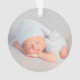 This custom baby's 1st Christmas ornament features a woodland bunny rabbit, greenery wreath and light wood background. SAMPLE PHOTO OF BABY IS NOT INCLUDED. REPLACE WITH YOUR OWN PHOTO BEFORE ORDERING.