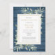 A celebration of life photo remembrance invitation featuring greenery on a rustic blue wood panels background. Designed by Thisisnotme©