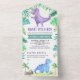 Rustic Greenery Cute Purple Dinosaur Baby Shower All In One Invitation
