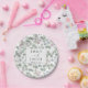 This personalized eucalyptus wedding plate features the bride and groom’s names beautifully centered within a soft bordered frame, surrounded by a delicate watercolor pattern of muted green leaves and subtle blush berry accents. The elegant botanical design blends natural charm with modern minimalism, making it perfect for garden weddings, rustic receptions, bridal showers, or rehearsal dinners. Customized with your names and wedding date, this greenery wedding plate adds a sophisticated and cohesive touch to your wedding table décor.