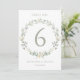 Greenery elegant botanical watercolor white flowers with eucalyptus leaves for rustic garden wedding table numbers.