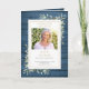 A personalised order of service funeral memorial folded program featuring greenery on a rustic blue wood panels background. Designed by Thisisnotme©