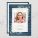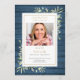 An elegant rustic blue wood greenery order of service funeral memorial program. Designed by Thisisnotme©