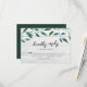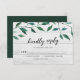 This rustic rsvp card features Italian Ruscus with the words "kindly reply" in trendy script all against a pale wood background on the front and a dark green the back side.