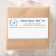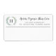 Return address shipping labels featuring your monogram inside of a rustic green watercolor wreath and your business name in a thick handwriting font and two lines of text for your return address, over a white background. A thin line divides the space below where you can handwrite your customer's address. These botanical greenery shipping labels are a great way to add a professional touch to your packages.