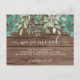 It is decorated with watercolor foliage in shades of green and a barn wood background.