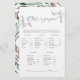 Watercolor leaves winter baby shower purse game cards designed to be quickly and easily customised. What's in your purse?