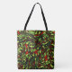 Rustic greenish yellow and vivid red curves tote bag