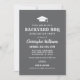 "Backyard BBQ" party invitation features a graduation cap motif, stylish custom text in rustic and modern fonts, a scroll, and plaid pattern design elements, and white text. Grey background colour can be customised. Perfect for a casual outdoor summer graduation party.