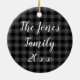 Rustic grey black plaid pattern frosty snow flake ceramic tree decoration