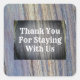 Express your appreciation to your vacation rental guests with this rustic square sticker. This sticker features a photo of beautiful woodgrain stripes displaying earth tone colours of brown and grey. A centre square of darker woodgrain provides the background for your words of appreciation. "Thank you for staying with us" can easily be customised to suit your needs.