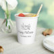Rustic Fall Halloween Party Paper Cup, with a simple pumpkin on a white background. With customisable typography lettering, you add your own text. A fun addition to your autumn holiday party and entertaining.